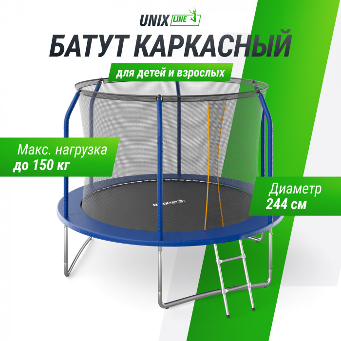 Батут UNIX Line Премиальный / Supreme Basic 8 ft (244 см) синий