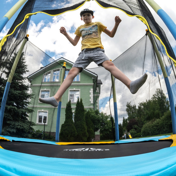Благодаря своим ярким и солнечным цветам - желтому и синему - батут DFC JUMP KIDS 60" выделяется среди других аналогов, добавляя свежести и позитива даже в самый обычный день.