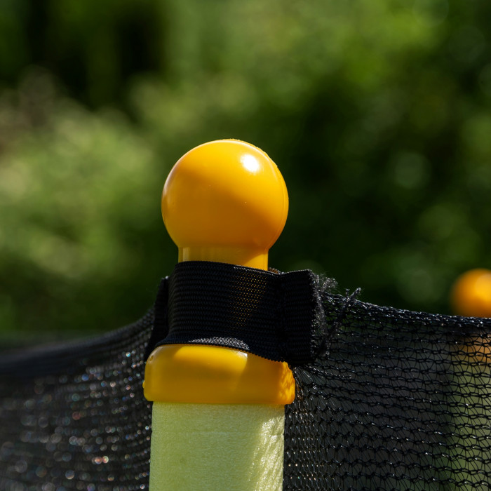 Конструкция батута выполнена из ультрарезистентного материала, обеспечивающего долговечность и безопасность в использовании. Мягкие рукоятки на дугах обеспечивают уверенность и комфорт при активных прыжках.