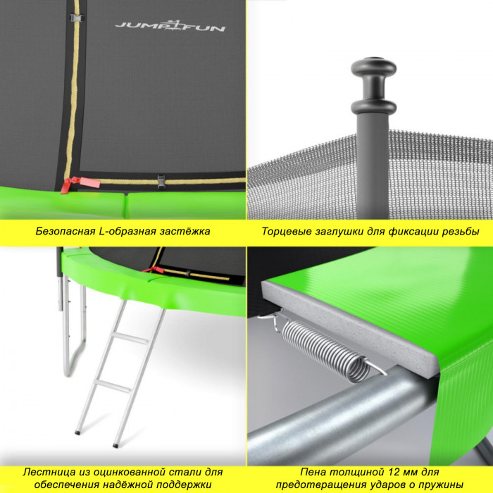 Батут с защитной сеткой DFC JUMP4FUN 6 ft зеленый с лестницей