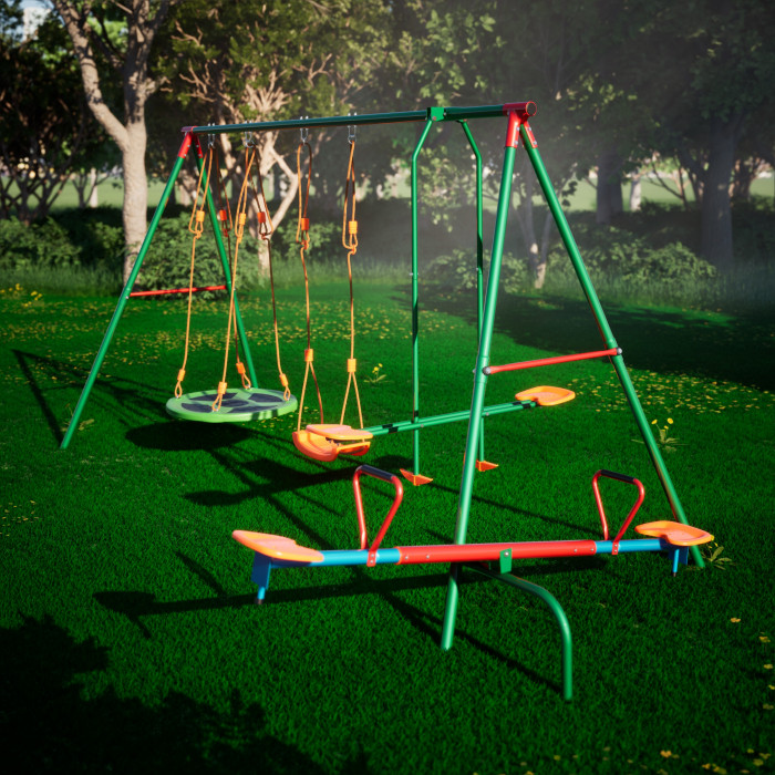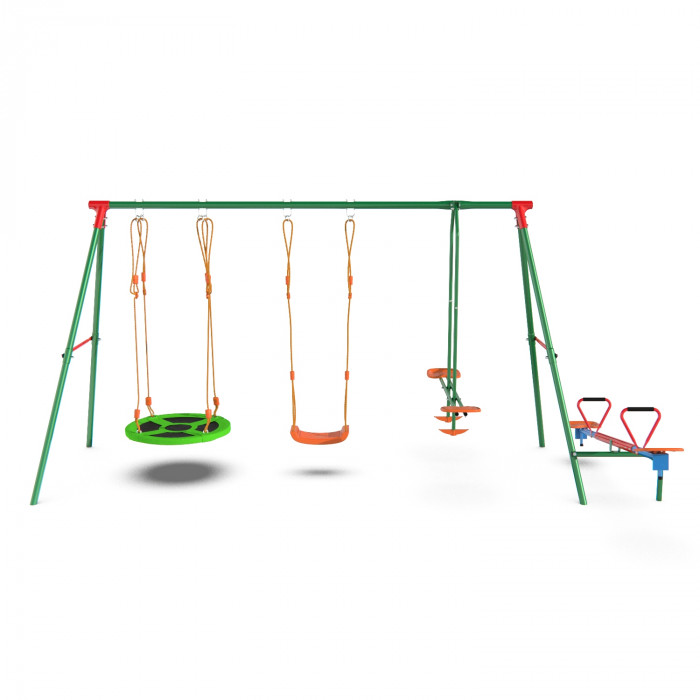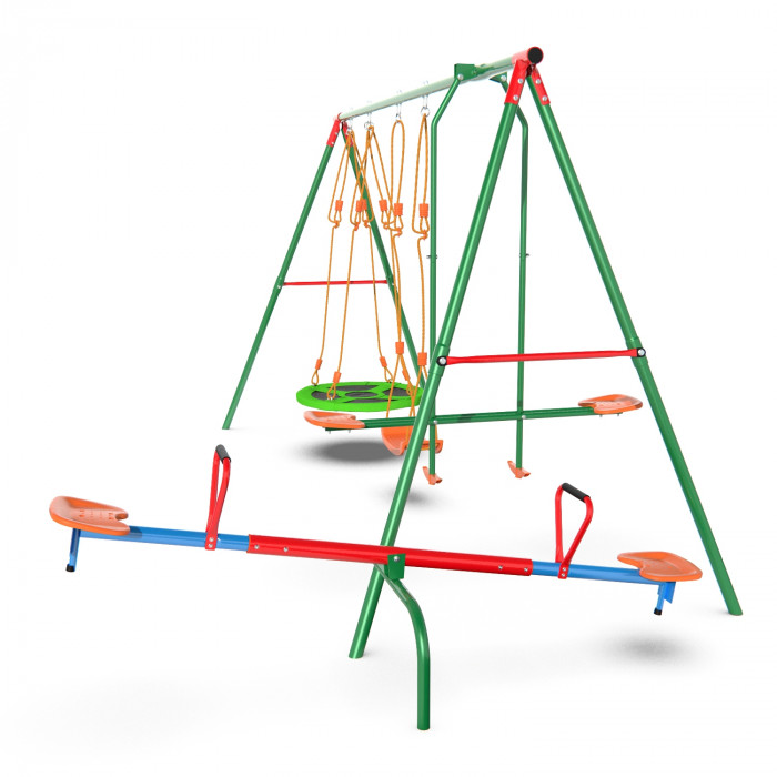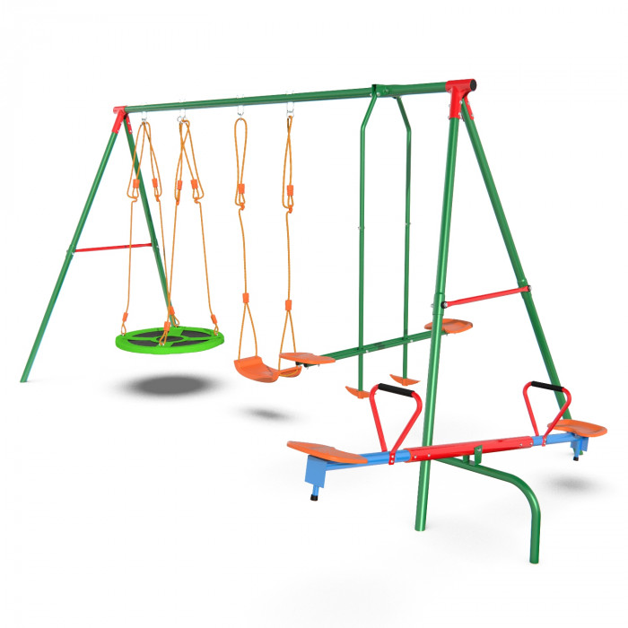 Детский комплекс DFC MULTIPLAY качели: планер, верёвочные, гнездо и балансир