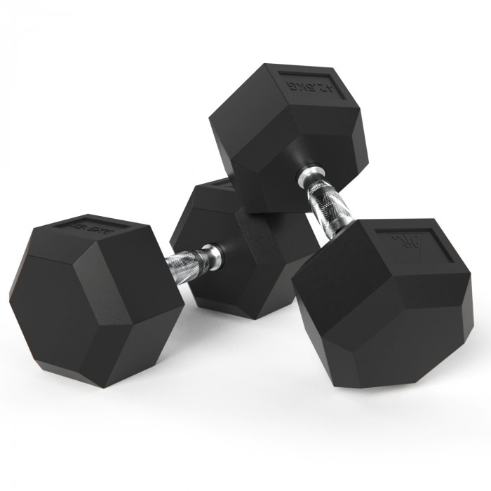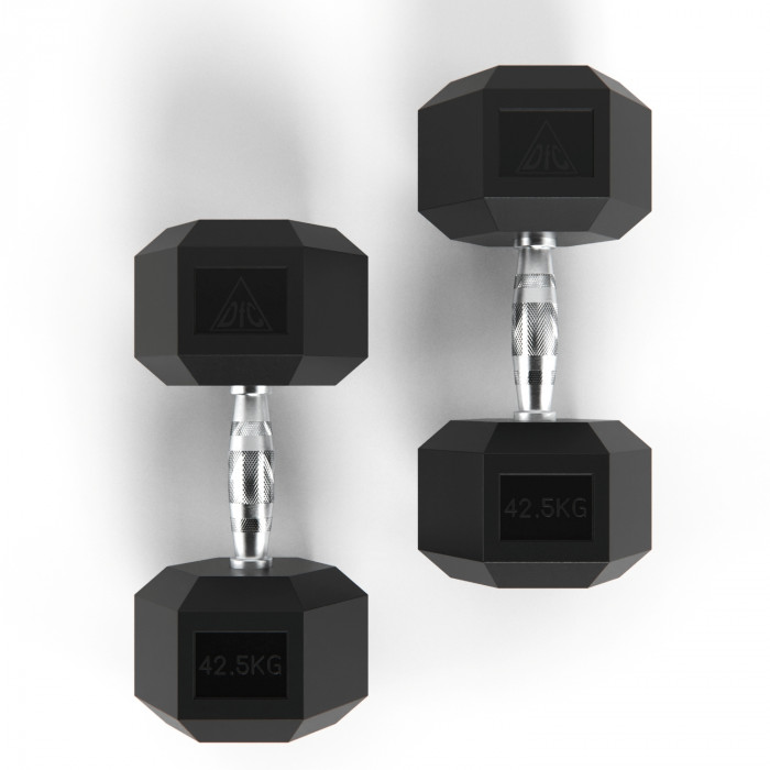 Гантели DFC Гексагональные, 2 шт. по 42.5 кг - это идеальное снаряжение для занятий спортом и создания крепкого и подтянутого тела, которое всегда мечтали иметь. Уникальный дизайн, основанный на принципе гексагона, обеспечивает надежное и комфортное использование, а также позволяет избежать случайного скатывания с поверхности.