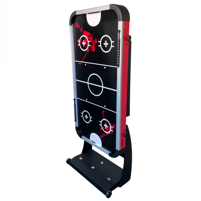 Благодаря удобным размерам (152,5 x 76 x 81 см) стол идеально подходит для домашнего использования, а складная конструкция стола особенно удобна для тех, кто хочет экономить место — стол можно легко сложить и убрать с помощью транспортировочных роликов до следующей игры. Хоккей станет отличным вариантом для семейных вечеров, дружеских турниров и веселого досуга.