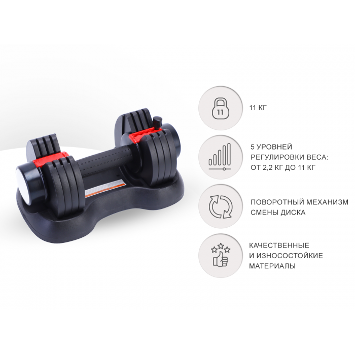 Эта гантель - идеальный спутник для всех, кто стремится к активному образу жизни и заботится о своем физическом развитии. Ее особенностью является возможность изменять вес, что позволяет вам наращивать нагрузку по мере увеличения силы и уровня физической подготовки.