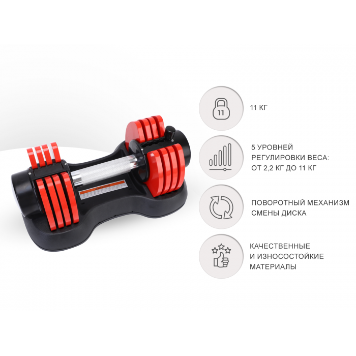 Изготовлена из высококачественных материалов, гантель обладает прочной конструкцией, которая выдержит любые нагрузки и будет служить верой и правдой на протяжении многих лет тренировок. Регулируемый вес – главная особенность этой модели. Он позволяет легко изменять нагрузку в зависимости от ваших потребностей и роста силы.