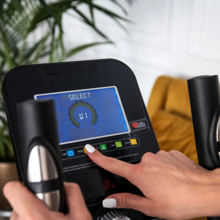 Консоль управления тренажера оснащена монохромным дисплеем с подсветкой. С помощью кнопок управления вы можете выбрать необходимую программу или быстро настроить сопротивление. Контролировать пульс вы можете с помощью встроенных датчиков. Педали с мягкими рифленными вставками позволят вам выбрать на тренажере удобное положение ног для продуктивной и продолжительной тренировки.