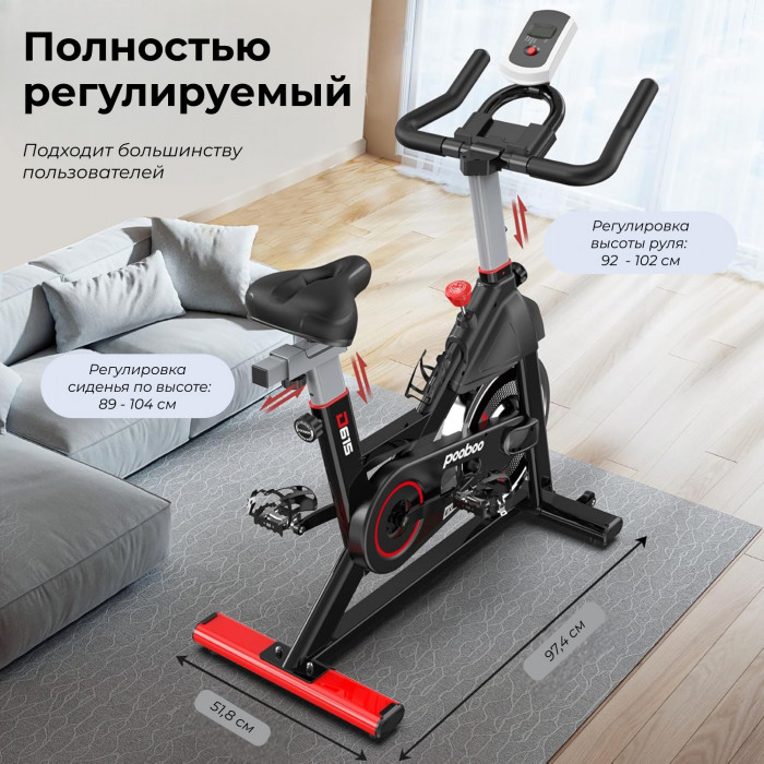 Спин-байк DFC Pooboo D615 чёрно-красного цвета — это современный тренажер кардио, который идеально подойдёт для регулярных домашних тренировок. Благодаря своей универсальности и расширенной системе настроек, он эффективно заменит занятия в фитнес-зале.