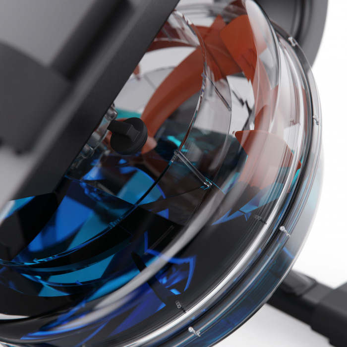 Тренажёр оснащён наклонным водяным баком под углом 50°, что позволяет увеличить сопротивление и нагрузку примерно на 30 % по сравнению с моделями с горизонтальным резервуаром. Такая конструкция точнее передаёт динамику настоящей гребли на воде, делая каждое движение более интенсивным и естественным. Благодаря этому тренировка становится эффективнее, глубже прорабатываются мышцы спины, рук и корпуса, а ощущения максимально приближены к реальному гребку.