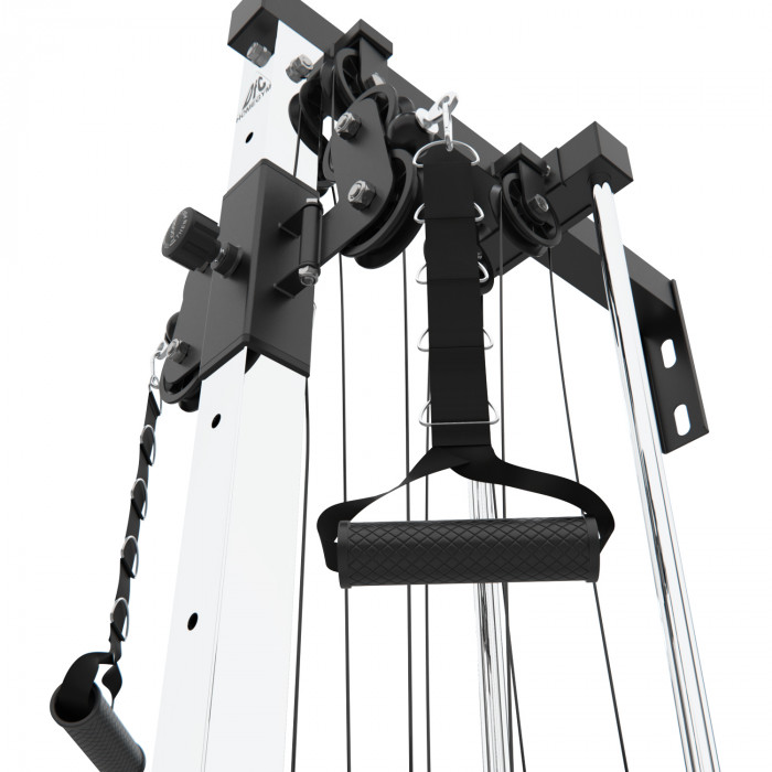 Кроссовер со свободными весами DFC D71104 - это отличное решение для занятий в домашних условиях. Максимальная нагрузка на конструкцию допустима до 150 кг, толщина троса составляет 6 мм. В комплекте рифлёные ручки для тяги с пятью крючками длиной 42 см для регулировки высоты хвата, их высота регулируется на 11 уровней.