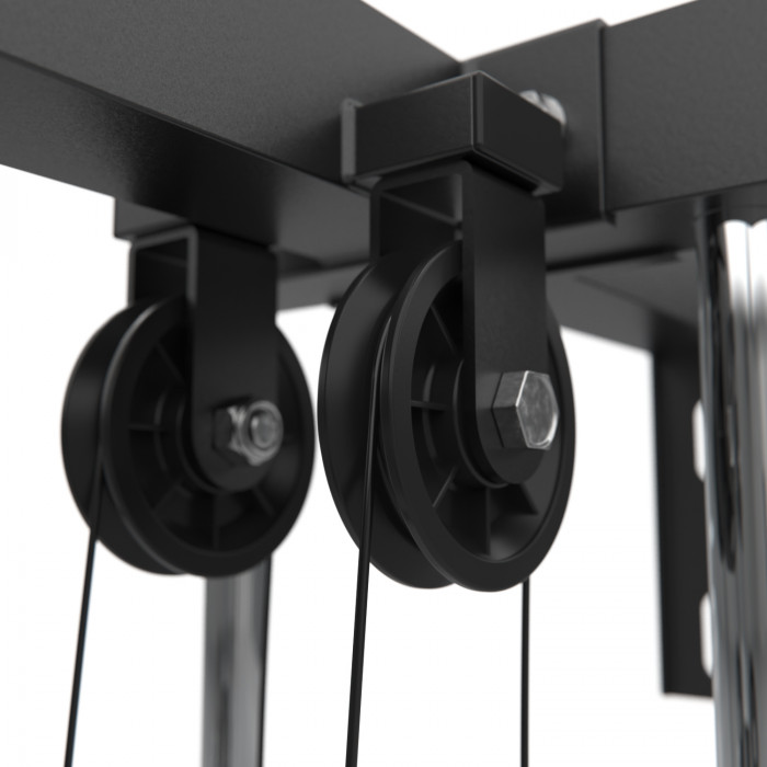 Держатели для дисков в кроссовере дадут вам возможность использовать дополнительные веса для увеличения нагрузки при выполнении упражнений. Кроме того, они организуют хранение дисков, что помогает сохранить порядок и экономит пространство в домашнем тренажерном зале. Они выдерживают нагрузку до 80 кг - по 40 кг с каждой стороны. Для большей устойчивости пользователь может прикрутить тренажёр к стене.