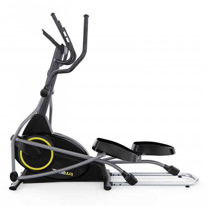Эллипс предназначен для пользователей весом до 120 кг. Тренажёр для ног оснащён магнитной системой нагрузки, которая обеспечивает бесшумную и плавную работу. Электронная регулировка сопротивления с 32 уровнями позволяет точно настраивать интенсивность тренировки, а инерционный вес маховика 11 кг способствует плавной и стабильной работе тренажера для похудения, создавая комфортные условия для длительных и эффективных тренировок.