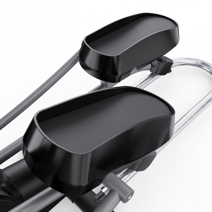 Рифлёные нескользящие педали обеспечивают отличное сцепление даже при интенсивных занятиях. Они просторные, устойчивые и предотвращают проскальзывание стоп, обеспечивая дополнительную безопасность. Длина шага составляет 48 см, что позволяет комфортно тренироваться как высоким, так и невысоким пользователям, делая движение естественным и эффективным.