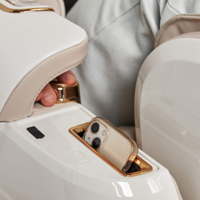 сканирование 3D по изгибам человеческого тела, система массажа с давлением на 360 градусов, определение индекса усталости, встроенный генератор отрицательных ионов кислорода, подогрев спины, анализ здоровья с измерением сердечных импульсов, пульсокиметр , слот для беспроводной зарядки и USB порт, функция массажа голеней с возможностью регулировки интенсивности в трех направлениях, функция массаж ступней и подошвы стоп, валик для ног, 2 массажные каретки, система массажа ног