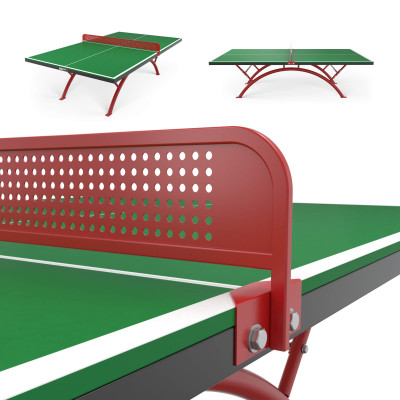 Антивандальная сетка с жестким креплением к столу изготовлена из стали толщиной 1 мм, толщина рамки составляет 10 мм. Благодаря этому, стол для пинг понга отлично подходит для эксплуатации как в частных домах и на дачах, так и в общественных местах, таких как парки, школы и кемпинги.
