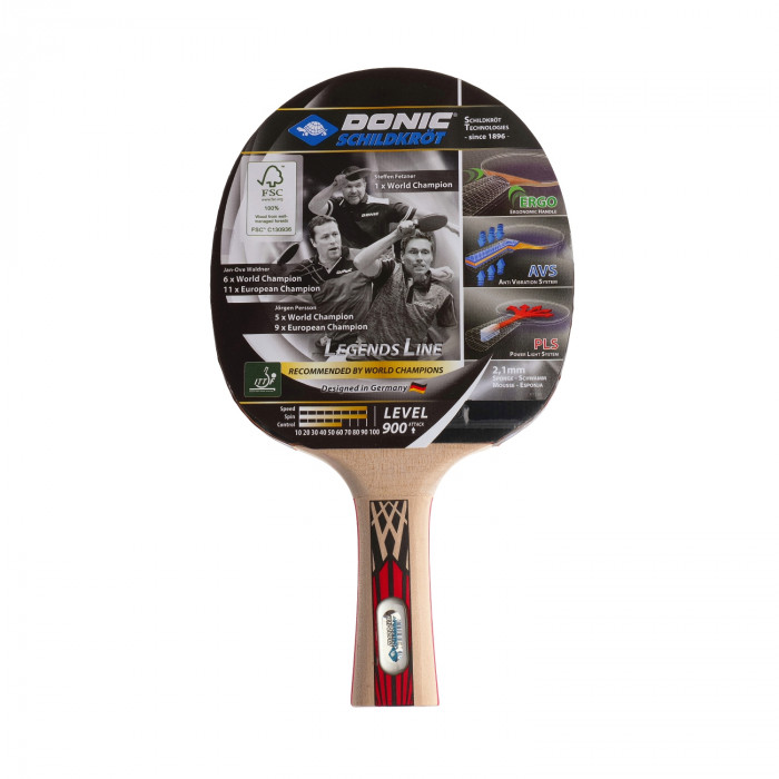 Но внешность – лишь одна из многих причин, почему DONIC LEGENDS 900 стоит обратить на нее внимание. Ее технические характеристики не оставят равнодушными даже самых требовательных игроков. Сочетание высококачественной древесины и инновационных материалов обеспечивает идеальное сочетание скорости, контроля и вращения.
