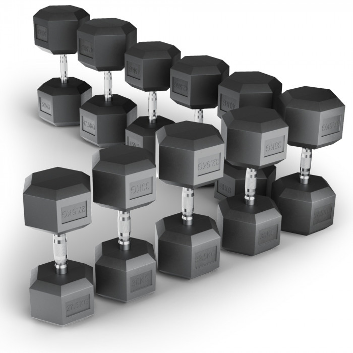 Ряд гантелей гексагональных UNIX Fit обрезиненные от 27,5 до 50 кг