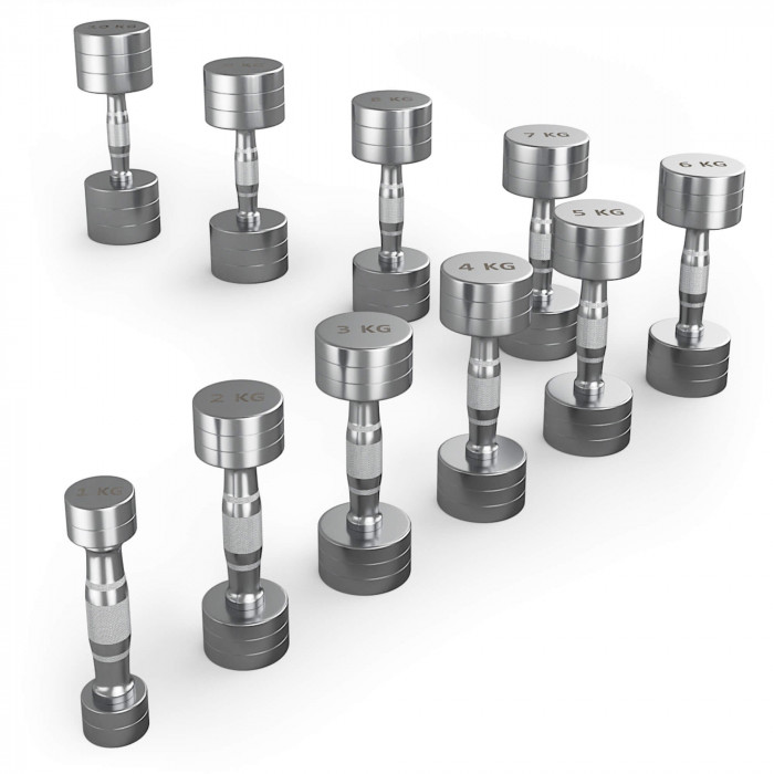 гантели: 1 кг - 2 шт, 2 кг - 2 шт, 3 кг - 2 шт, 4 кг - 2 шт, 5 кг - 2 шт, 6 кг - 2 шт, 7 кг - 2 шт, 8 кг - 2 шт, 9 кг - 2 шт, 10 кг - 2 шт