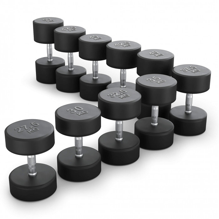 гантели: 27,5 кг - 2 шт, 30 кг - 2 шт, 32,5 кг - 2 шт, 35 кг - 2 шт, 37,5 кг - 2 шт, 40 кг - 2 шт, 42,5 кг - 2 шт, 45 кг - 2 шт, 47,5 кг - 2 шт, 50 кг - 2 шт.