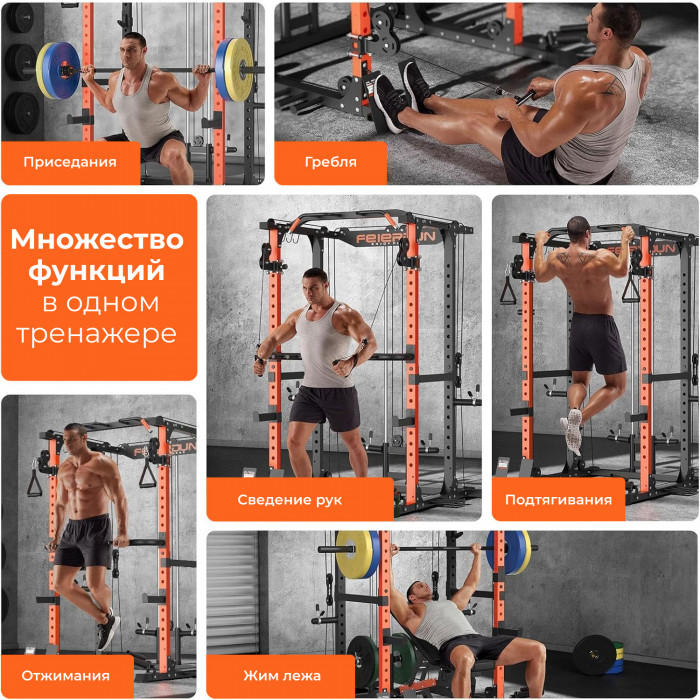 Силовая рама многофункциональная DFC D025— компактное и удобное решение для домашних тренировок, позволяющее выполнять широкий спектр силовых упражнений, включая подтягивания, отжимания на брусьях, тягу верхнего и нижнего блока.