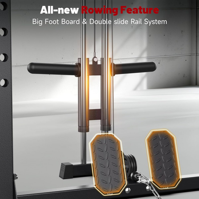 Максимальный вес пользователя составляет до 120 кг, что обеспечивает безопасную и комфортную эксплуатацию тренажёра для пользователей разного уровня подготовки. Рама имеет прочный профиль и посадочный диаметр, а толщина тросов и рукояти для тяги обеспечивают надёжность и стабильность при выполнении упражнений.