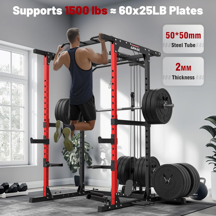 Силовая рама многофункциональная DFC D029 — компактное и удобное решение для домашних тренировок, позволяющее выполнять широкий спектр силовых упражнений, включая подтягивания, отжимания на брусьях, тягу верхнего и нижнего блока.