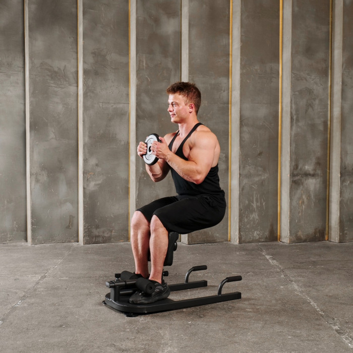 Тренажёр для приседаний DFC X-Factor представляет собой компактное и эффективное устройство для тренировок. С его помощью можно укрепить мышцы ног, ягодиц и пресса, а также развить общую физическую форму. Максимальный вес пользователя составляет 100 кг, что позволяет использовать тренажер практически каждому. Профиль основной трубы составляет 38 х 38 х 1,2 мм. Валики тренажера регулируются по длине на 7 уровней, позволяя адаптировать устройство под индивидуальные параметры тела. Это обеспечивает комфорт и безопасность тренировок. Благодаря регулировке высоты упора с подушкой на 6 уровней, спортсмены могут усложнять или упрощать упражнения, постепенно увеличивая нагрузку на мышцы. Тренажёр X-Factor подходит не только для приседаний, но и для выполнения упражнений на пресс, а также отжиманий. Это делает его универсальным и эффективным помощником в домашних тренировках. Ножки тренажера оснащены присосками, что обеспечивает его устойчивость на любой поверхности и предотвращает скольжение. Это делает использование тренажера безопасным и комфортным. Благодаря компактным размерам, тренажёр не занимает много места и может храниться даже в небольших помещениях. *логотип на подушке может меняться в зависимости от партии, на фотографиях в карточке оба варианта логотипов
