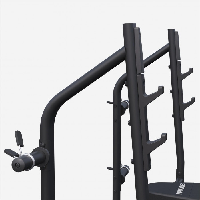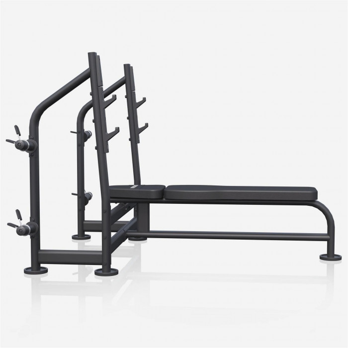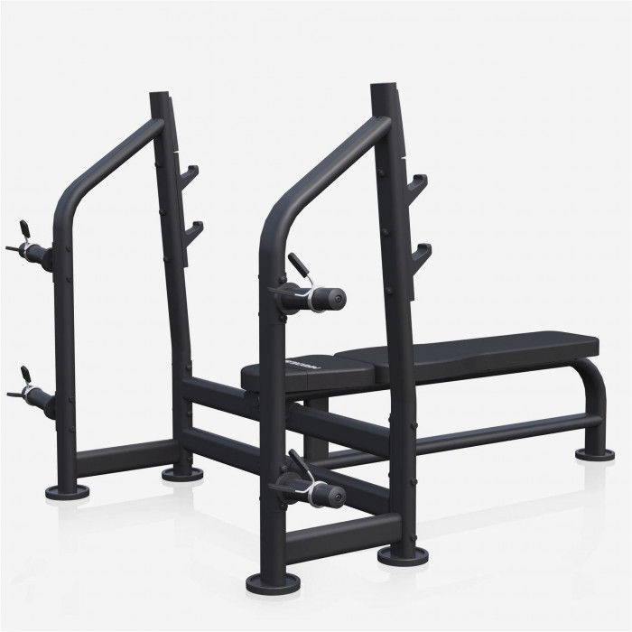 Скамья обеспечивает оптимальные условия для выполнения жима лёжа, жима на плечи, разведений рук и многих других упражнений. Для удобства и безопасности тренировки предусмотрены страховочные крюки, обеспечивающие высокий уровень безопасности во время занятий. Четыре держателя для блинов с пружинными замками помогают поддерживать порядок в тренировочной зоне, а конструкция рассчитана на использование стандартных олимпийских блинов.