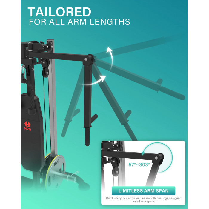 Модель совместима с дисками разного посадочного диаметра и посадочным диаметром грифа для стандартных штанг. Максимальный вес пользователя — 130 кг и 180 кг на загрузочные штифты. Компактная упаковка и качественные материалы делают тренажёр удобным для установки дома и долговечным в использовании.