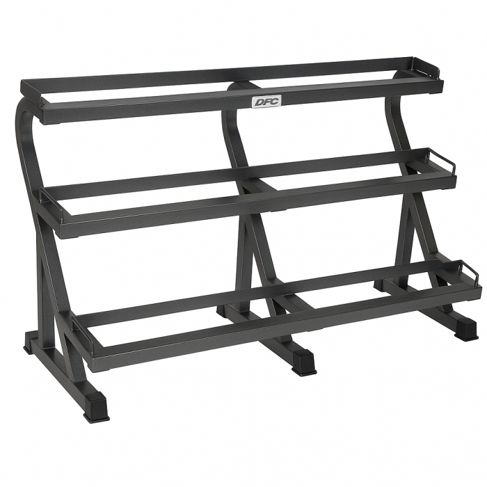 Трёхъярусная конструкция стойки позволяет удобно разместить гантели различных размеров и весов. Оптимальное расстояние между полками обеспечивает лёгкий доступ к каждой паре гантелей, а сама стойка экономит пространство, сохраняя порядок в домашнем спортзале.