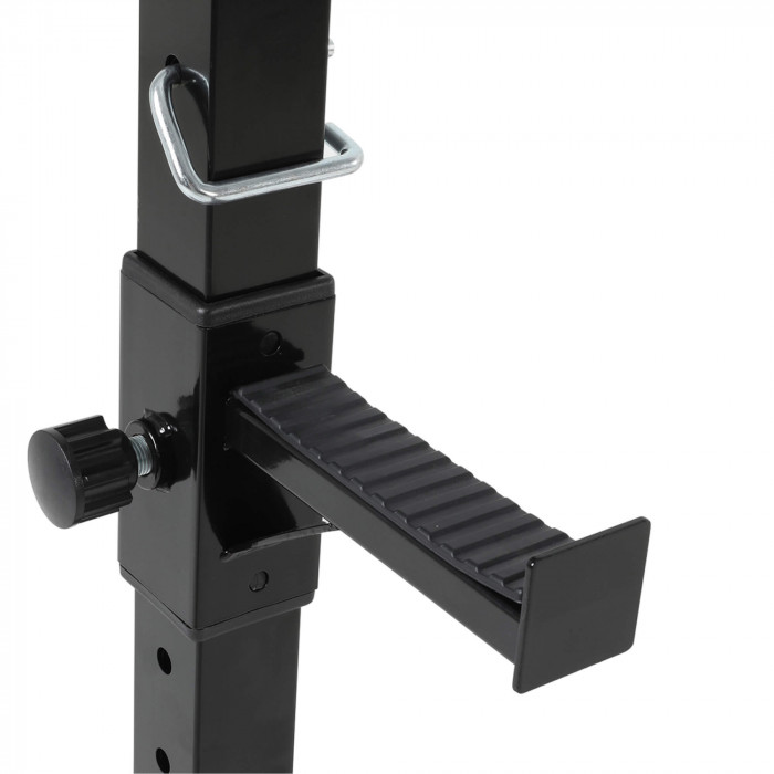 - Регулировка страховочных крюков под штангу по высоте на 6 уровнях;