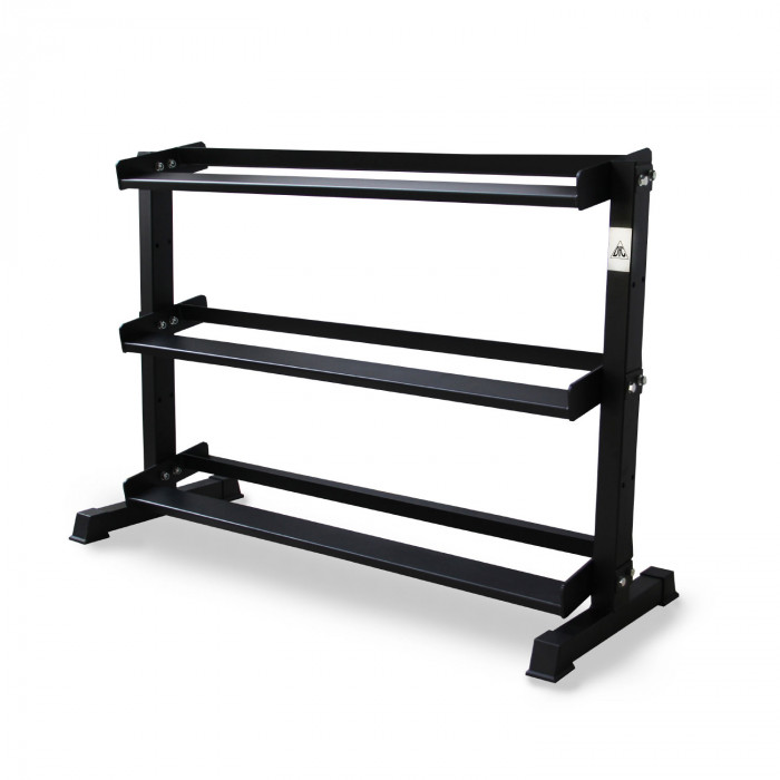 Стойка для хранения профессиональных гантелей DFC из серии POWERGYM RA080 чёрного цвета для домашнего использования.