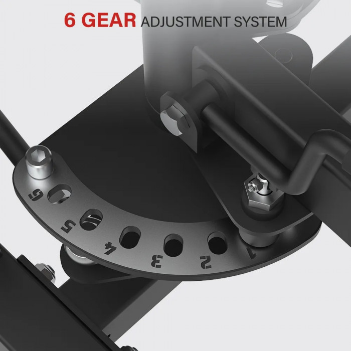 Модель оснащена регулировочным механизмом и ручкой для настройки амплитуды, позволяя адаптировать тренажёр под разные комплекции. Максимальный вес пользователя — 130 кг и 180 кг на загрузочные штифты. Компактная упаковка и качественные материалы делают тренажёр удобным для установки и долговечным в использовании.