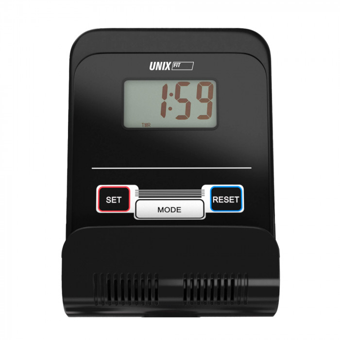 Информативный дисплей отображает показатели времени тренировки, расхода калорий, пульса, преодоленного расстояния и скорости. Также, дисплей оснащен подставкой для планшета/смартфона. В комплекте с эллиптическим тренажером UNIX Fit SL-350 поставляется держатель и спортивная бутылка объемом 550 мл.