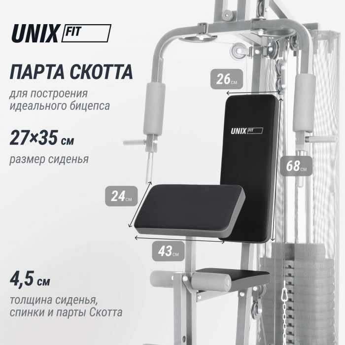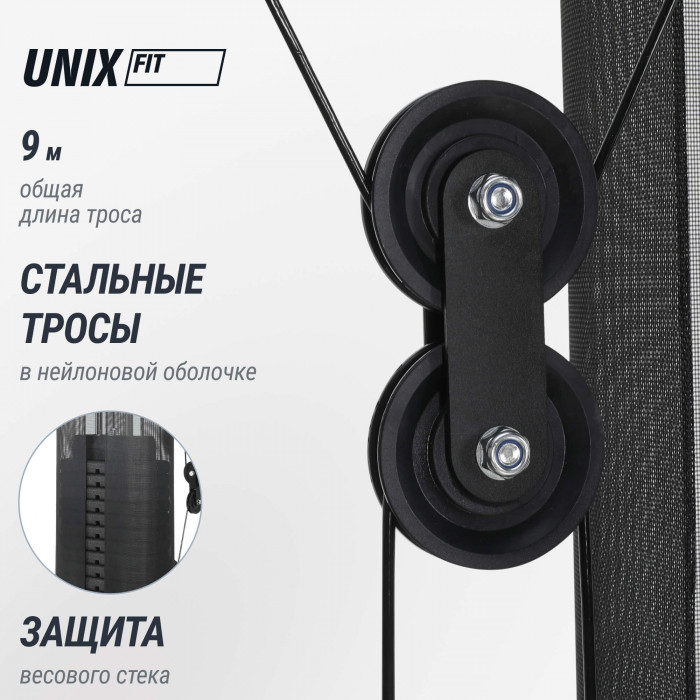 UNIX Fit BLOCK 50 обладает надежной конструкцией из прочного металла, что гарантирует его долговечность и устойчивость во время интенсивных тренировок. Боковые блоки позволяют регулировать нагрузку в зависимости от ваших целей и уровня тренировки.
