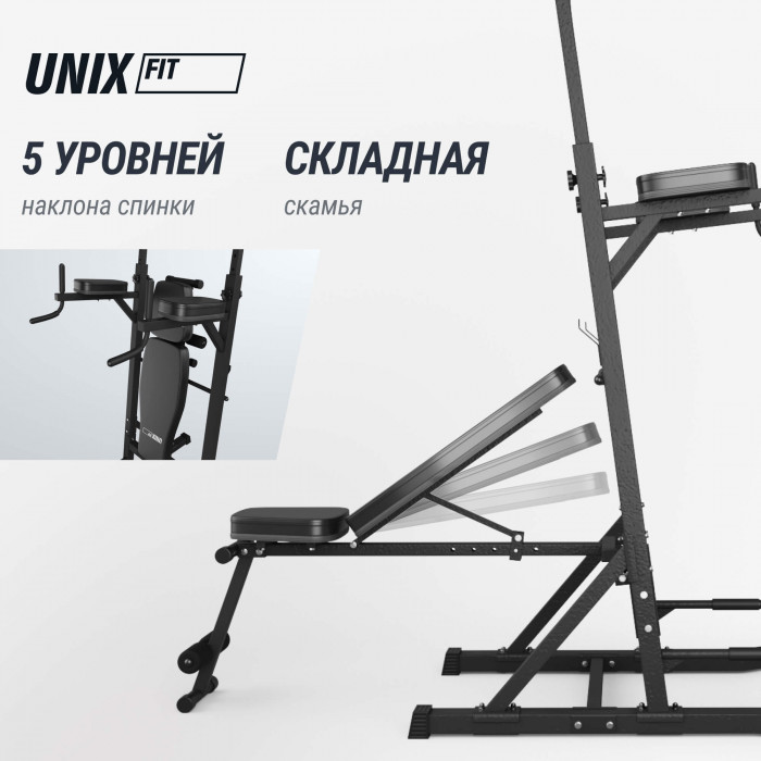 Турник-пресс-брусья со скамьей UNIX Fit силовая стойка / Power Tower 150P