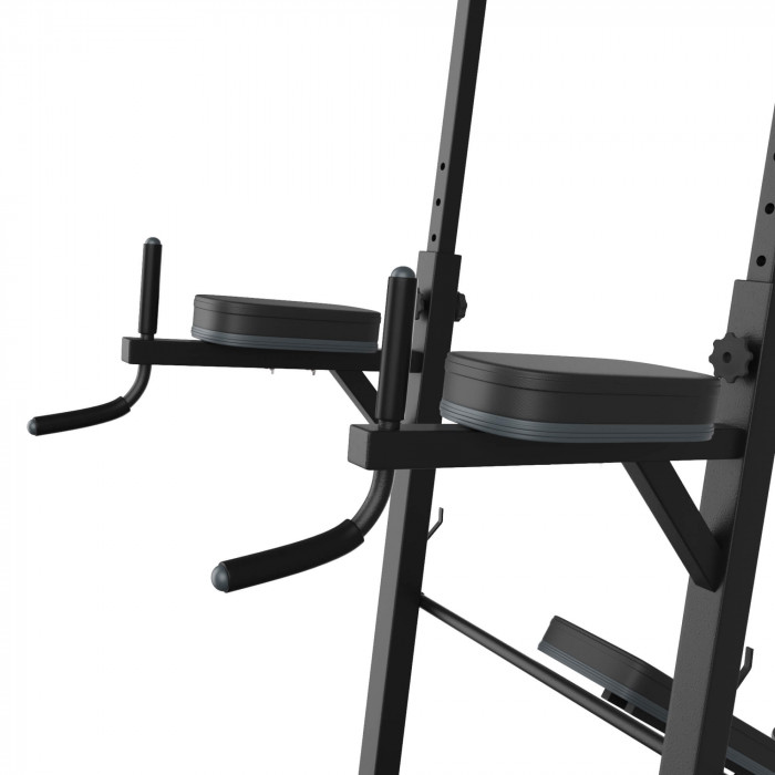 Тренажер турник-пресс-брусья со скамьей UNIX Fit POWER TOWER 150Р предназначен для домашних тренировок. Модель подходит как начинающему, так и опытному спортсмену для выполнения базовых упражнений с собственным весом, штангой и гантелями. Позволяет развивать мышцы: