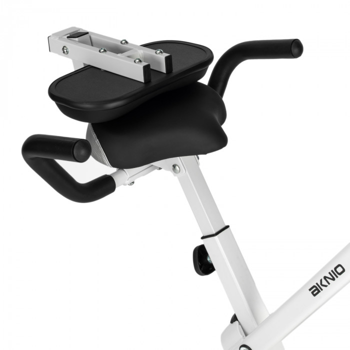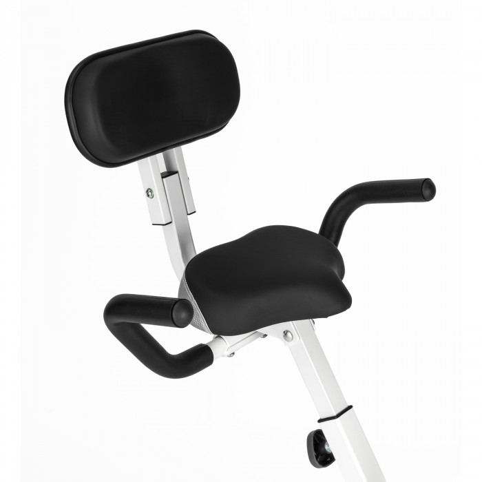 Конструкция велотренажёра продумана для максимального комфорта. Расстояние между поручнями — 35 см, что обеспечивает естественное и устойчивое положение рук во время тренировки. Расстояние между поручнями сиденья — 45 см, благодаря чему удобно держаться при посадке и во время занятий. Сиденье регулируется на 7 уровней в диапазоне от 79 до 87 см, поэтому тренажёр легко подстраивается под рост пользователя. Мягкое сиденье со спинкой поддерживает поясницу и снижает нагрузку на спину, что особенно важно при длительных тренировках.