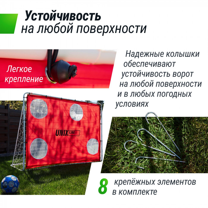 Ворота футбольные UNIX Line стальные 217x153 см переносные с мишенями, 2 шт.