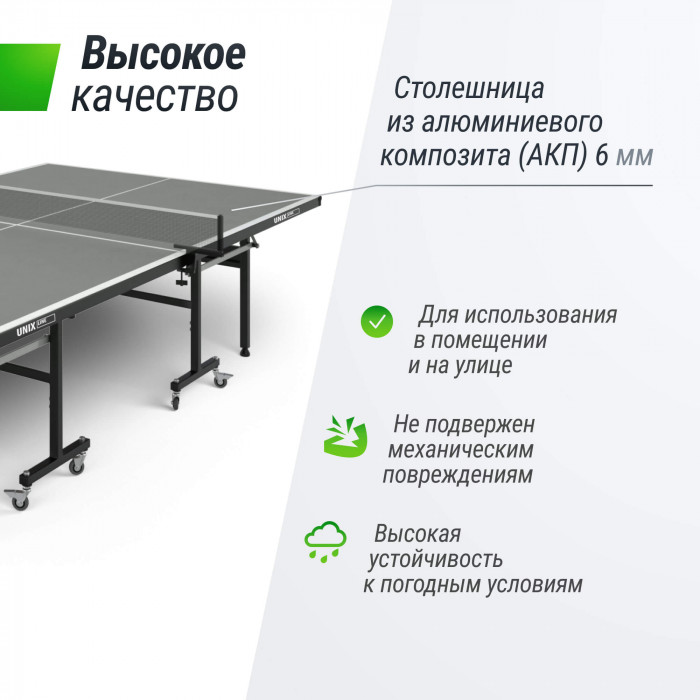 Всепогодный теннисный стол UNIX Line для улицы outdoor 6 мм, серый